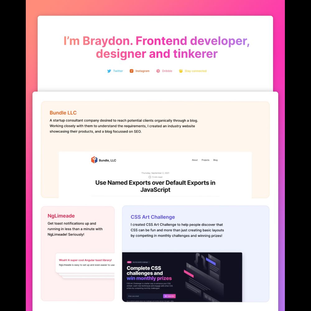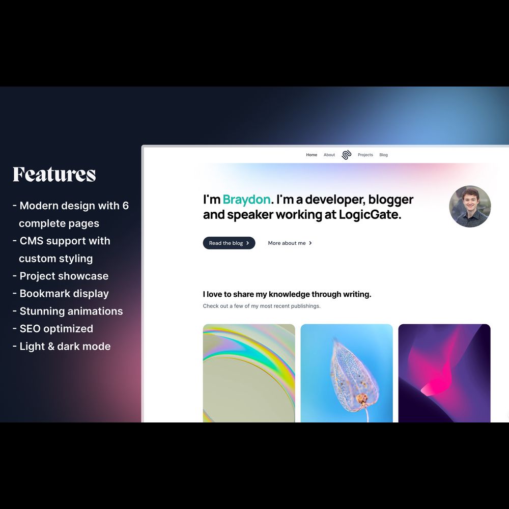 Unleash your creativity and establish an online presence like never before with Moonstone, the whimsical personal portfolio template designed to set your work apart from the rest. Crafted with a keen eye for aesthetics and functionality, Moonstone brings you a seamless fusion of a stunning portfolio and a powerful custom blog, making it the perfect platform to showcase your talents and unleash your writing prowess. Moonstone includes: - 7 pages, including a speaking page and custom 404 page - A project section to showcase your work - A blog handcrafted with custom colored code-blocks - A toolbox to display your favorite apps and links across the web Demo Blogfolio here: https://technical-mission-858335.framer.app/?via=braydoncoyer